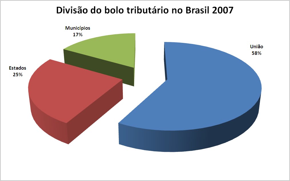 Estudo realizado há dois anos pelo técnico Eduardo Stranz, da equipe técnica da Confederação Nacional dos Municípios, mostra claramente que a União fica com 58% dos recursos arrecadados, os estados ficam com 25% e resta aos municípios apenas 17%.