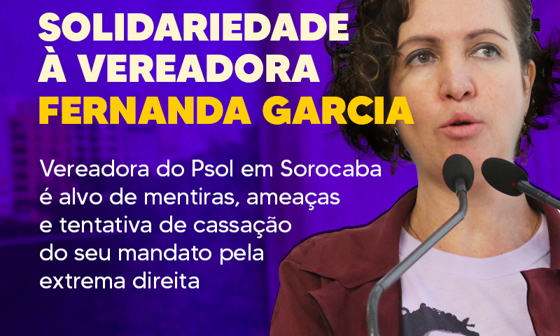 O PSOL São Paulo manifesta toda solidariedade e apoio à vereadora Fernanda Garcia, da cidade de Sorocaba. A parlamentar do nosso partido é alvo de uma campanha sistemática de desinformação, ataques e ameaças, organizados pelo prefeito de extrema direita, Rodrigo Manga (Republicanos).